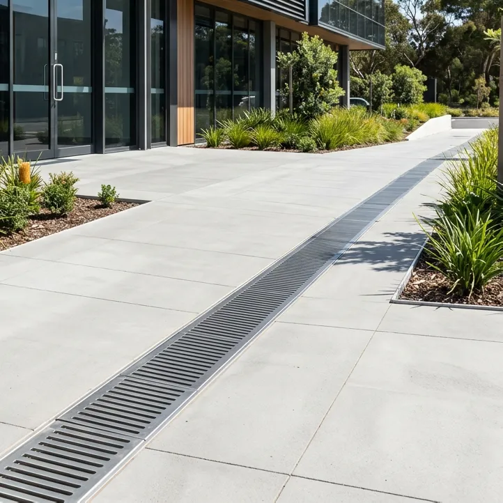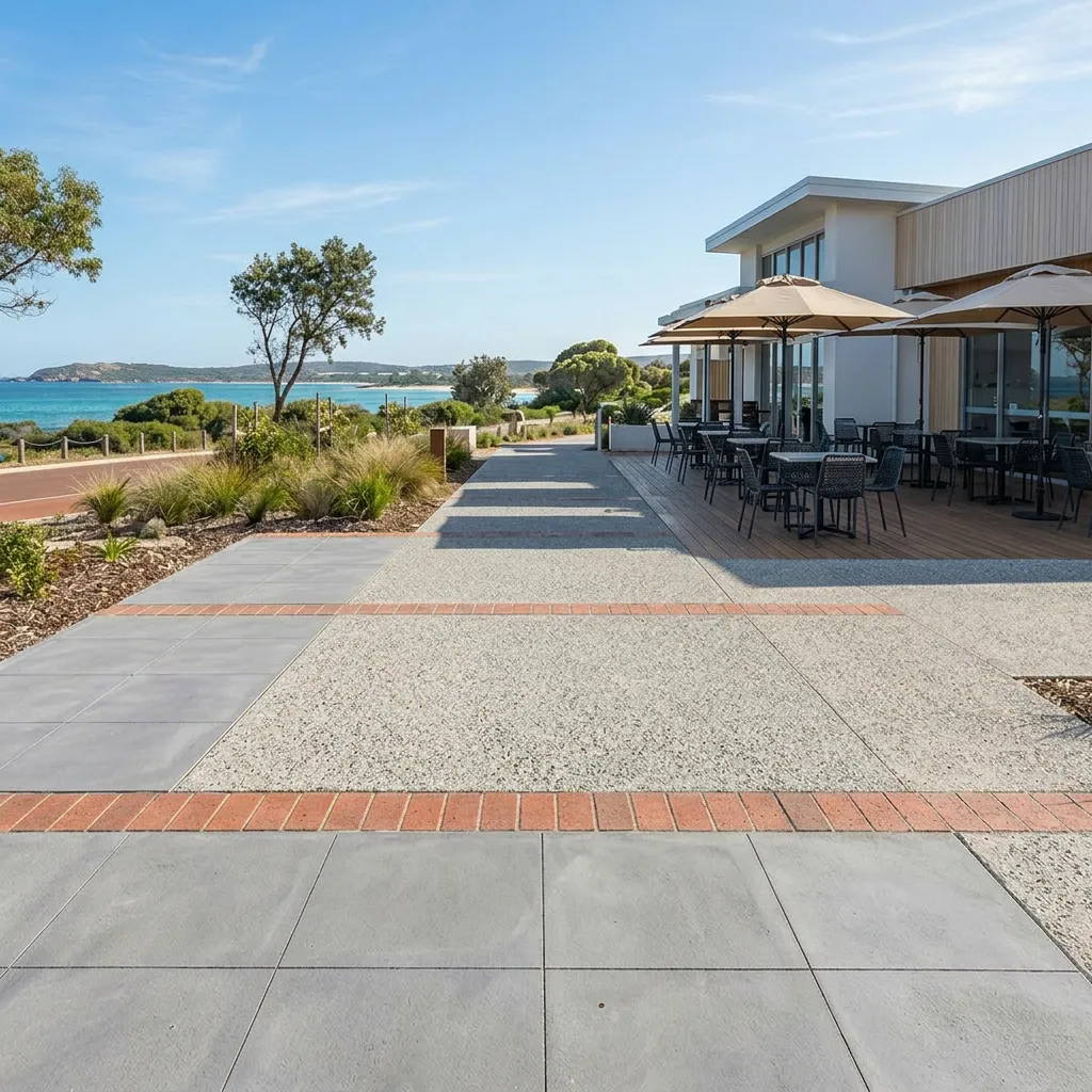 We prioritise durability over everything else for commercial properties. This usually means heavy-duty large format paving or exposed aggregate for footpaths, structural steel or limestone for garden edging, and robust, drought-tolerant native planting that can handle poor soil and intense sun without constant watering.