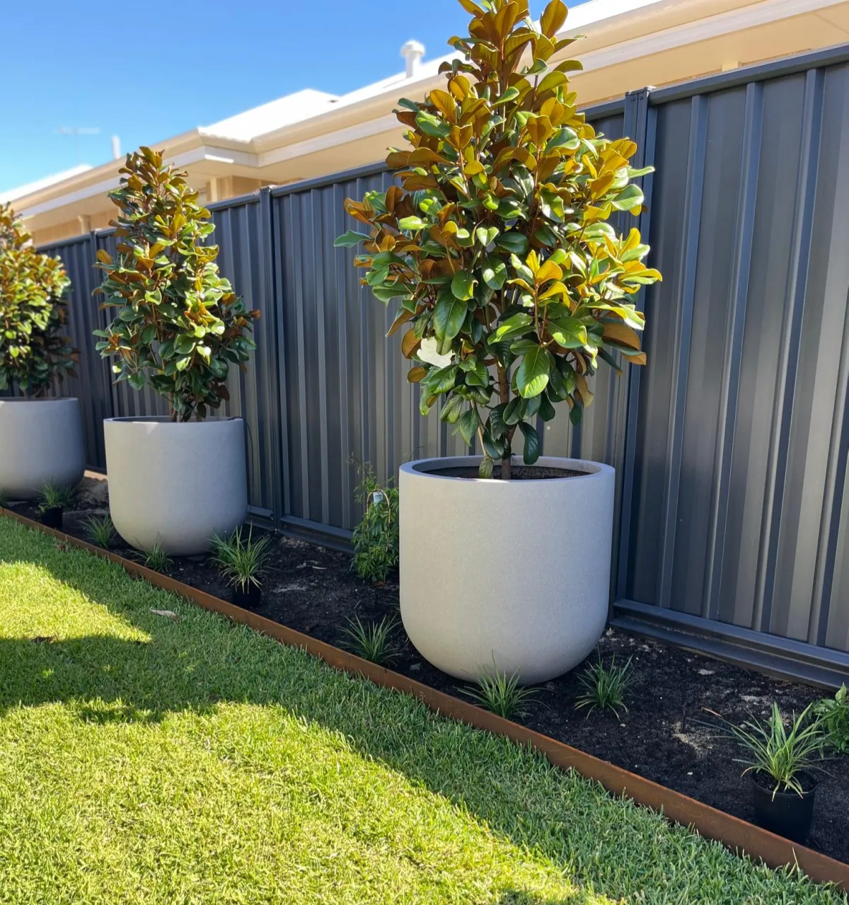 In fully paved courtyards, pots are the garden. We source high-quality, architectural pots (lightweight concrete or glazed) and install them with proper drainage and premium potting mix. A cluster of three pots of varying heights creates an instant design feature.